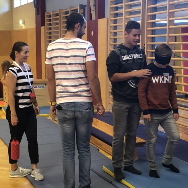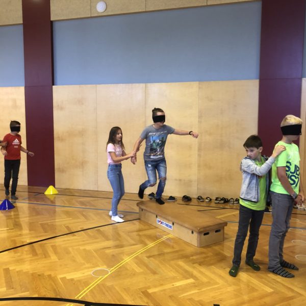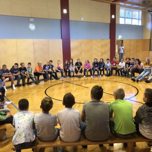 Im Rahmen des Peersprojekts der Schulsozialarbeiterin fand am 11.09.2019 ein Kennenlerntag der 1.Klassen mit den „Peers“ statt. Am Programm standen gruppendynamische Spiele, ein Steckbrief und ein Vertrauenslauf. Wir hatten alle sehr viel Spaß!