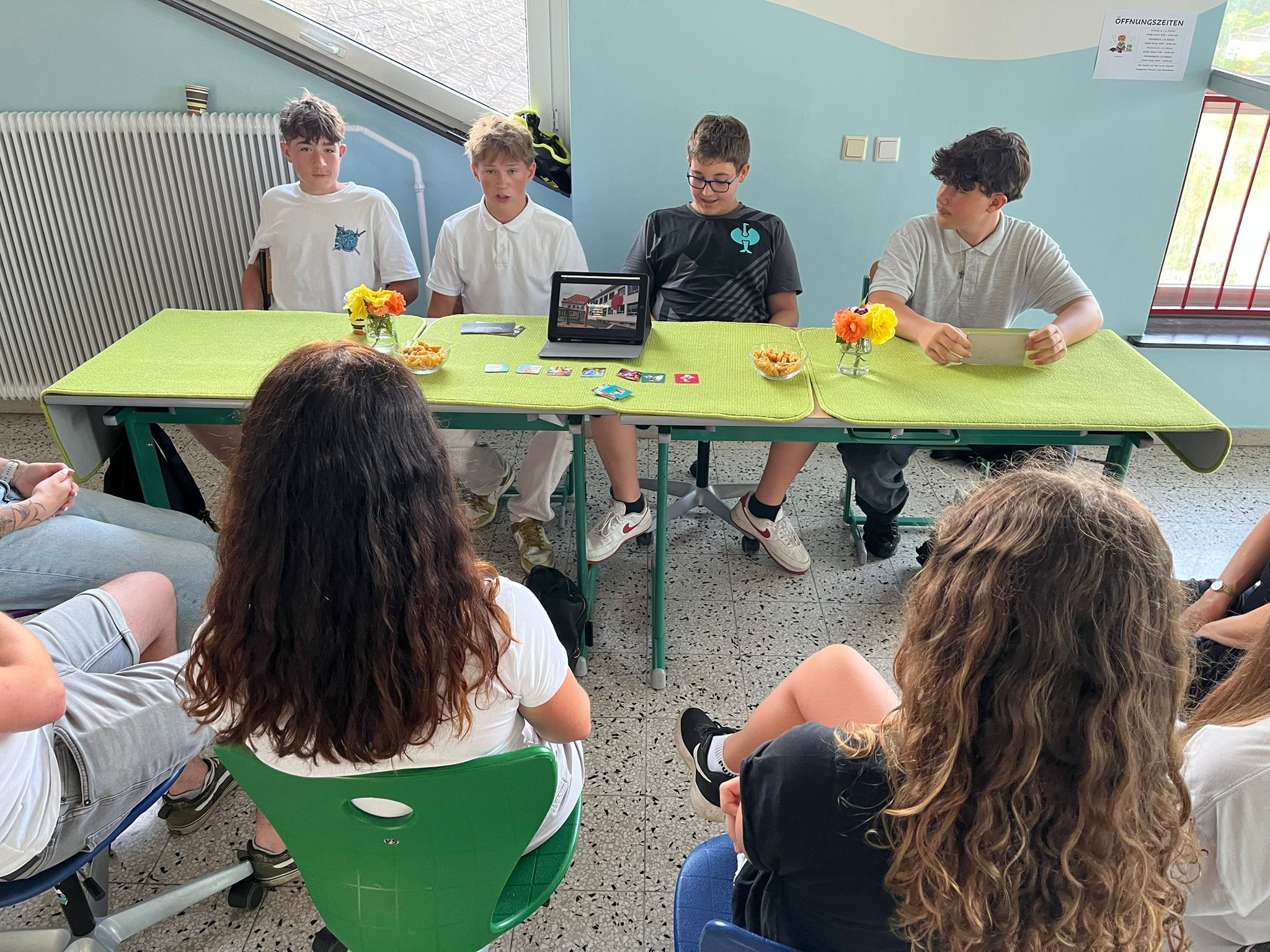 Im Rahmen der Projektwerkstatt fand am 25.06.2025 die Projektmesse statt. Die Schüler*innen der 3a und 3b präsentierten dabei die vielfältigen Projekte, an denen sie im Laufe des Schuljahres gearbeitet hatten. In diesem Schuljahr wurden unter anderem Projekte zu den Themen psychische Gesundheit und Erkrankungen, Kooperationen mit der Volksschule bzw. dem Kindergarten in Lafnitz, gesunde Jause, ein Podcast, Mechanik, Fußball, ein Gebärdensprachenkurs sowie die Planung eines Schulfestes, das in der letzten Schulwoche stattfinden wird, durchgeführt.