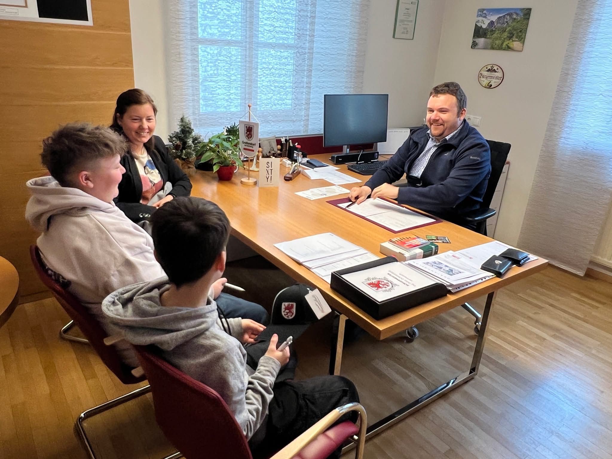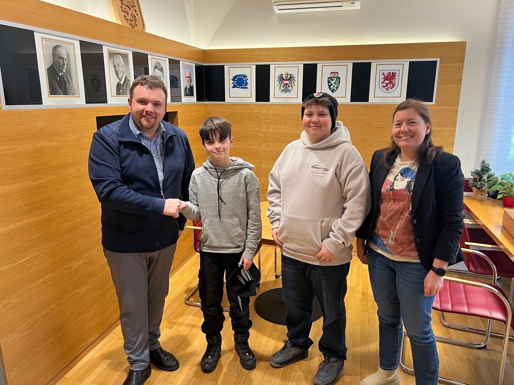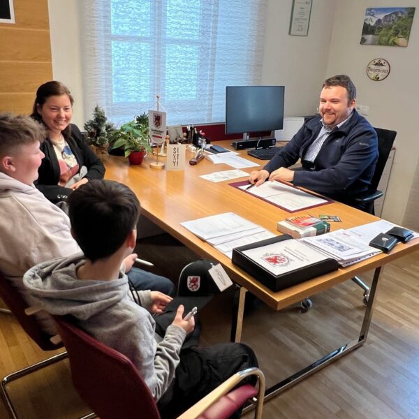 Unser Schulsprecher Patrick Gaulhofer und sein Stellvertreter Moritz Gleichweit statteten Bürgermeister Ing. Peter Domweber einen offiziellen Antrittsbesuch ab.